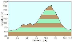 (400m d’ascension) . Lorsque la piste s’incurve à gauche (et donc vers l’ouest)(km 10.8) , un fléchage vous indique le